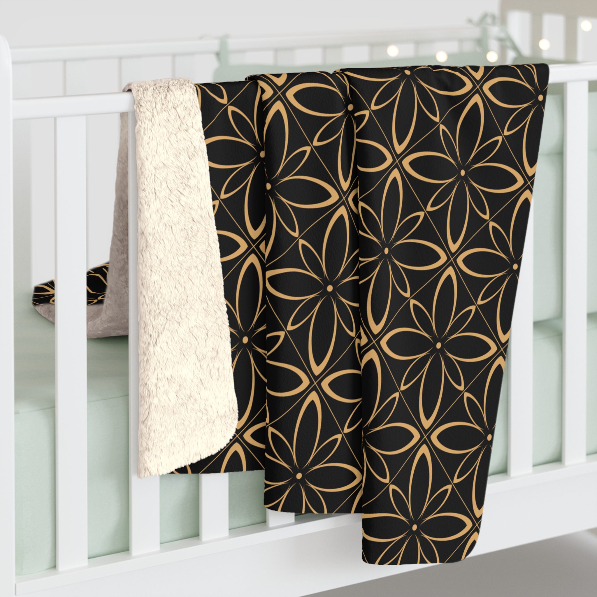 Golden Flower Pattern Design – Sherpa Fleece Blanket