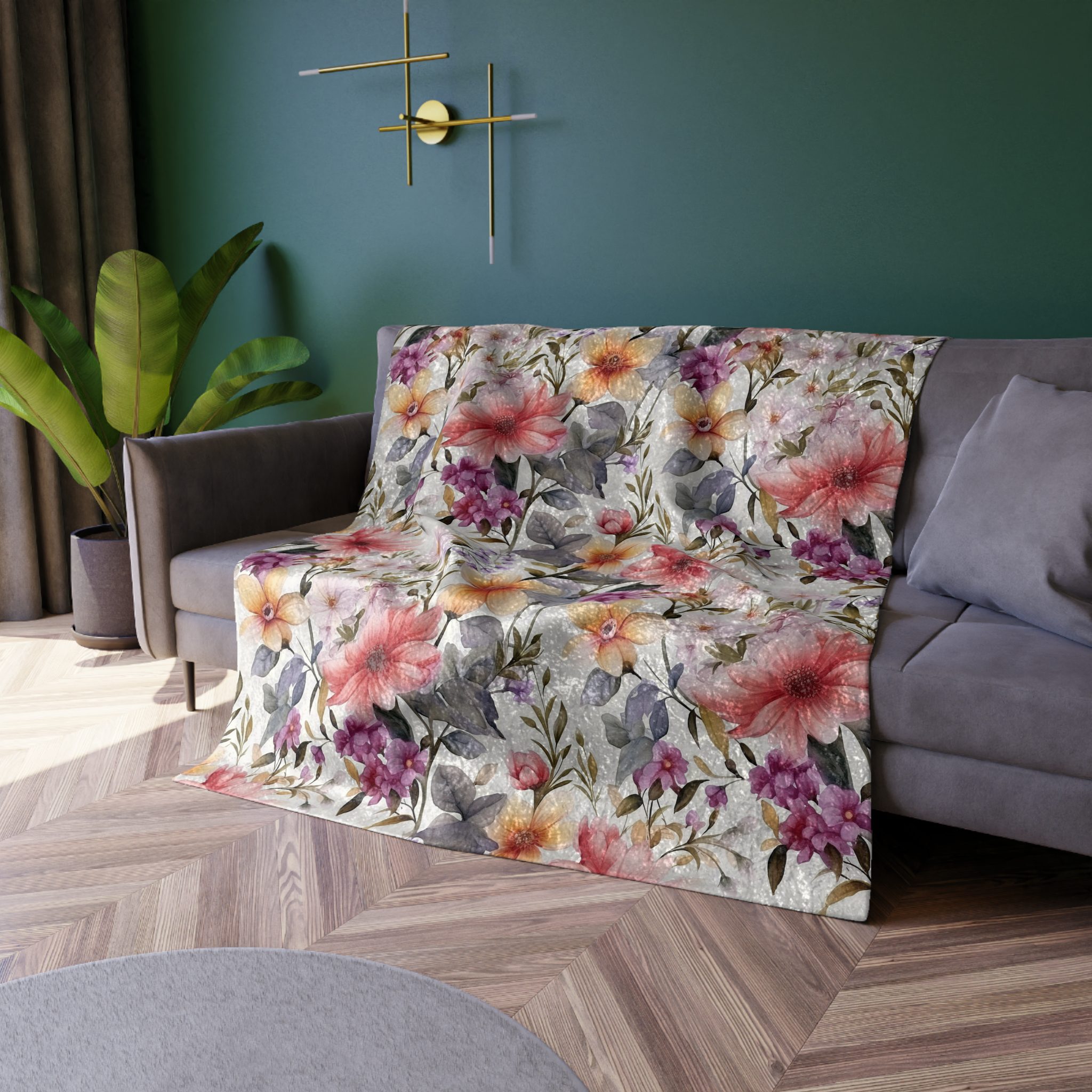 Colorful Flowers Pattren Design – Crushed Velvet Blanket