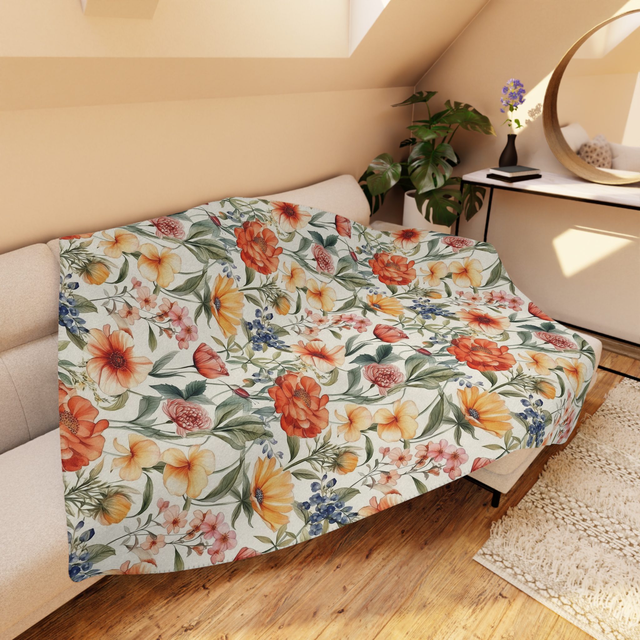 Colorful Flowers Pattren Design – Tan Sherpa Blanket