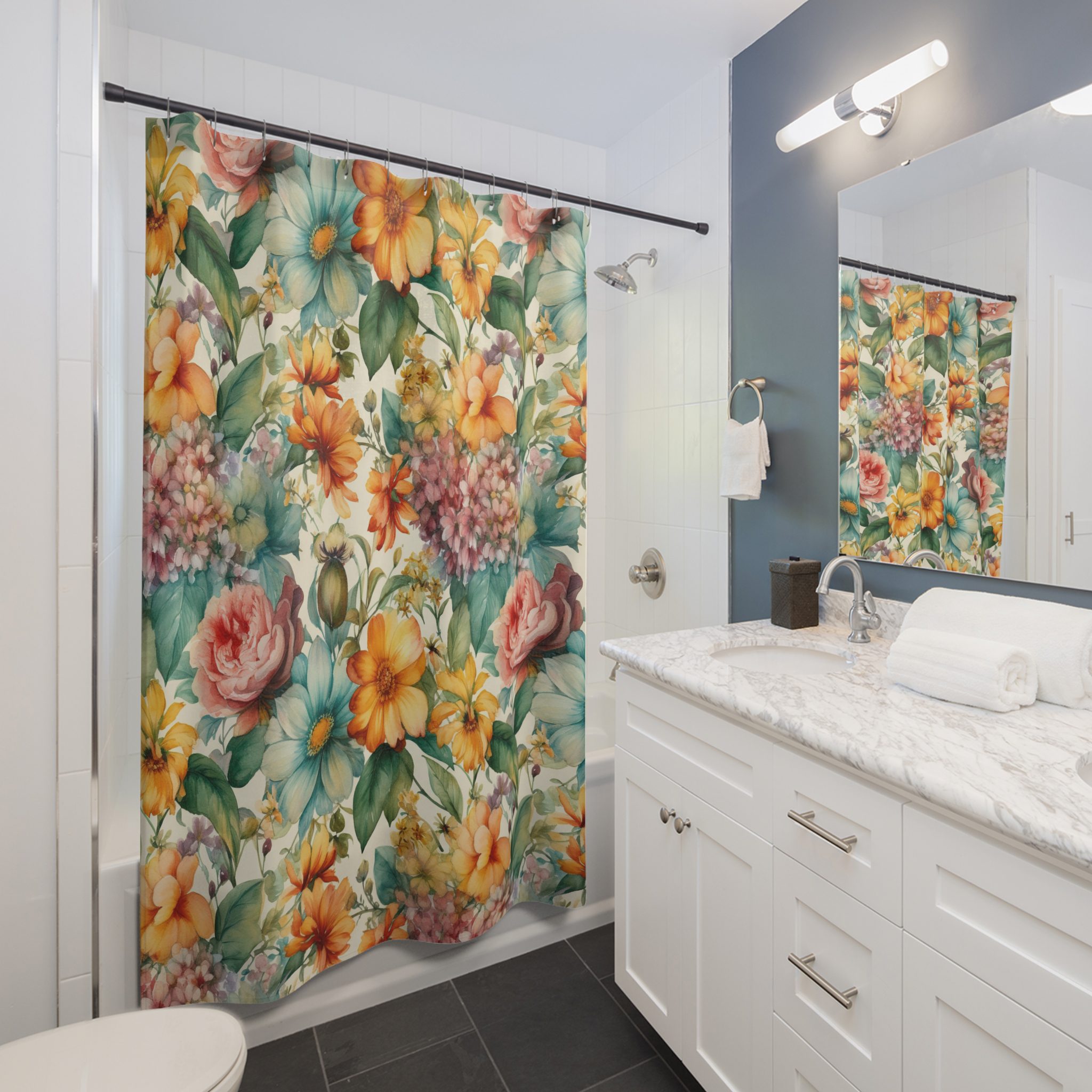 Floral Watercolor Seamless Patterns Bright Design – Shower Curtains
