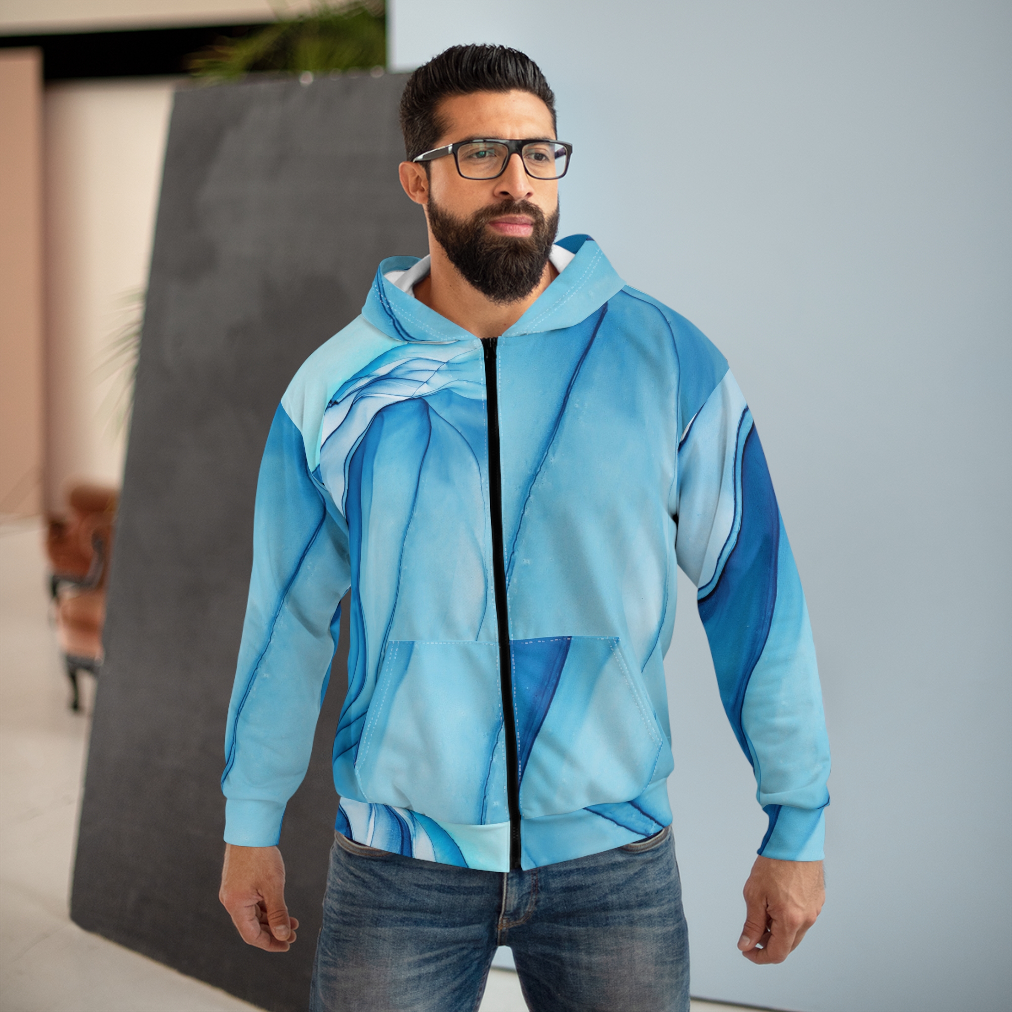 Blue Fluid Ink Textures Design – Unisex Zip Hoodie (AOP)