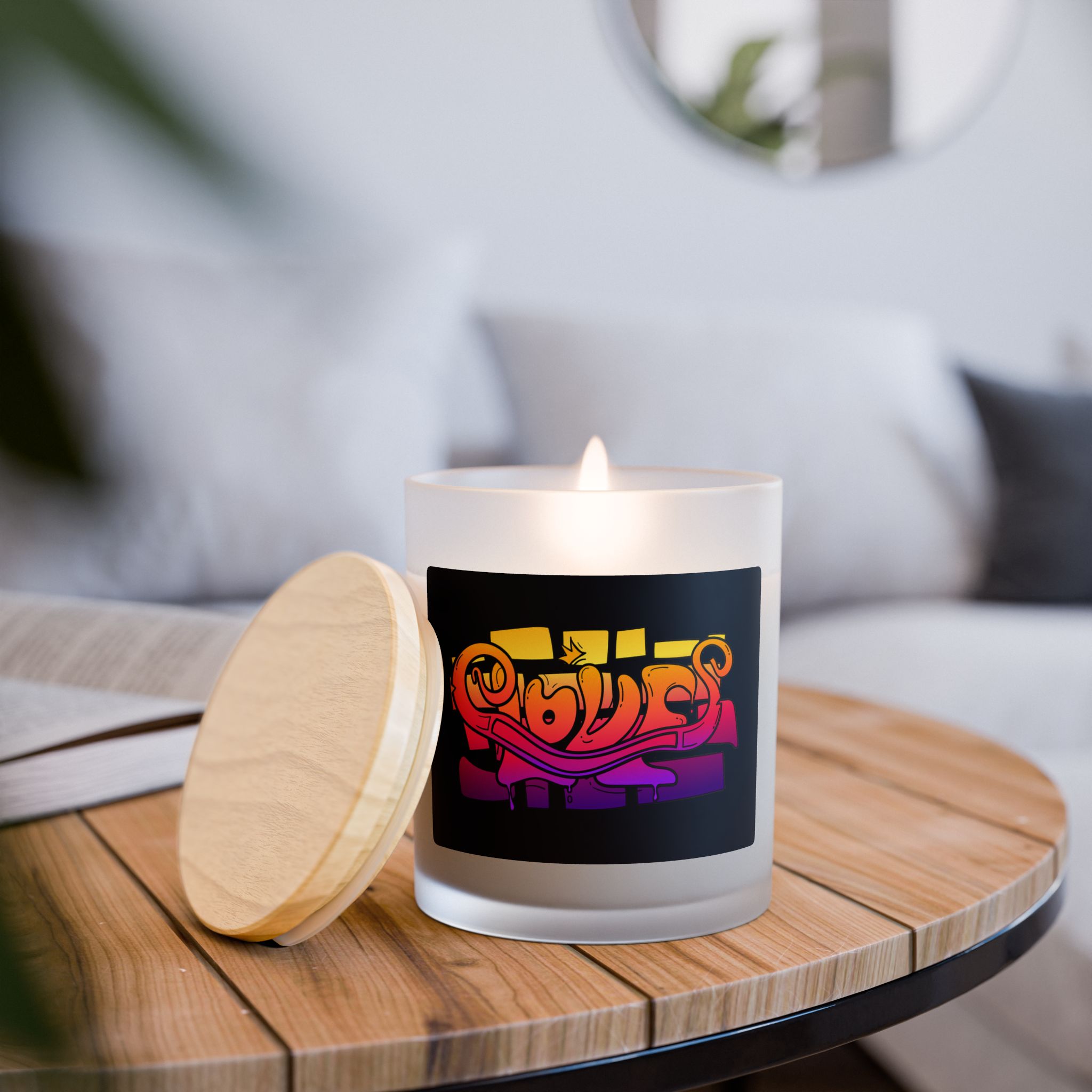 Love Graffiti Design – Frosted Glass Candle, 11oz