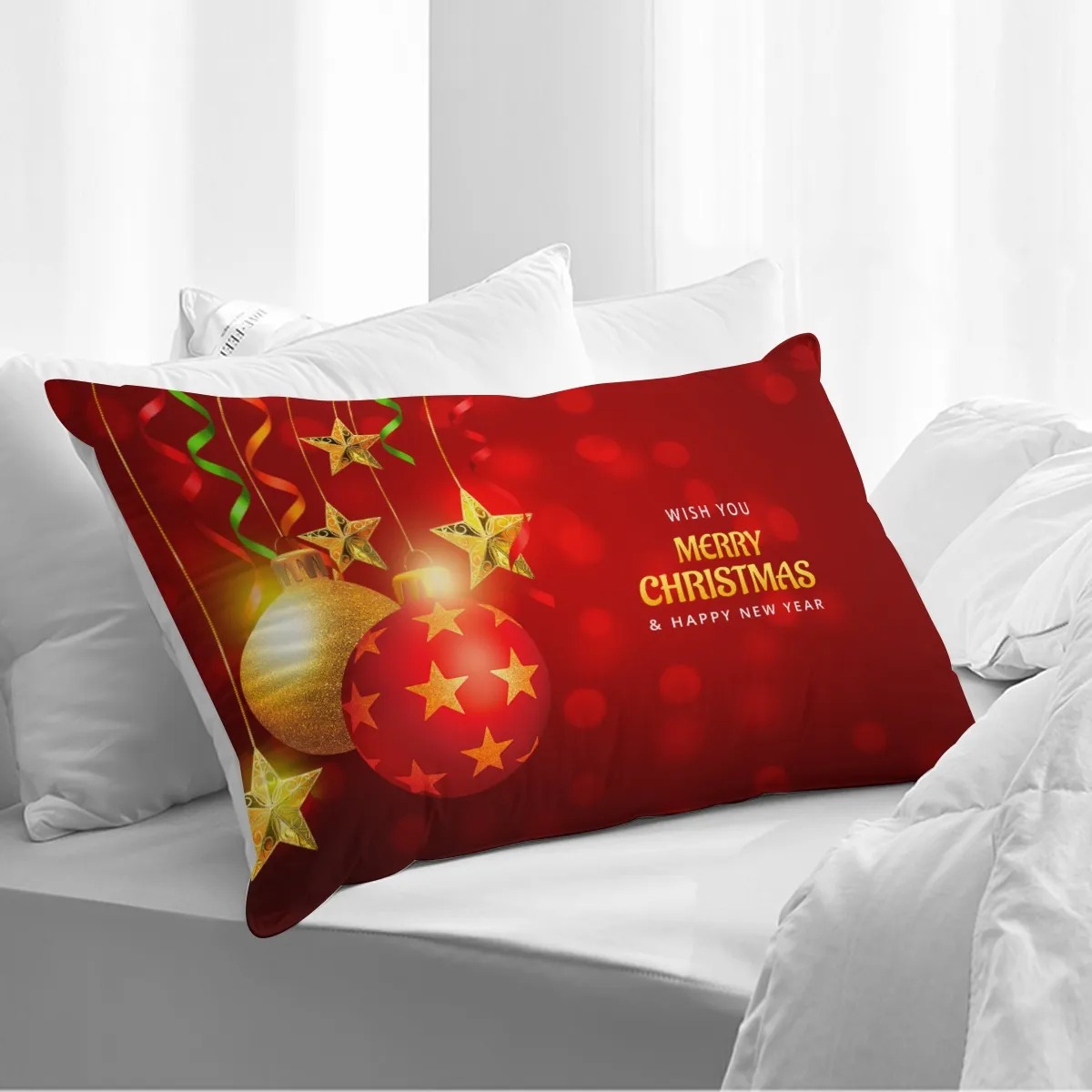 Christmas Ornament Red Pillow Cover – Festive Holiday Cushion Case (1PC)