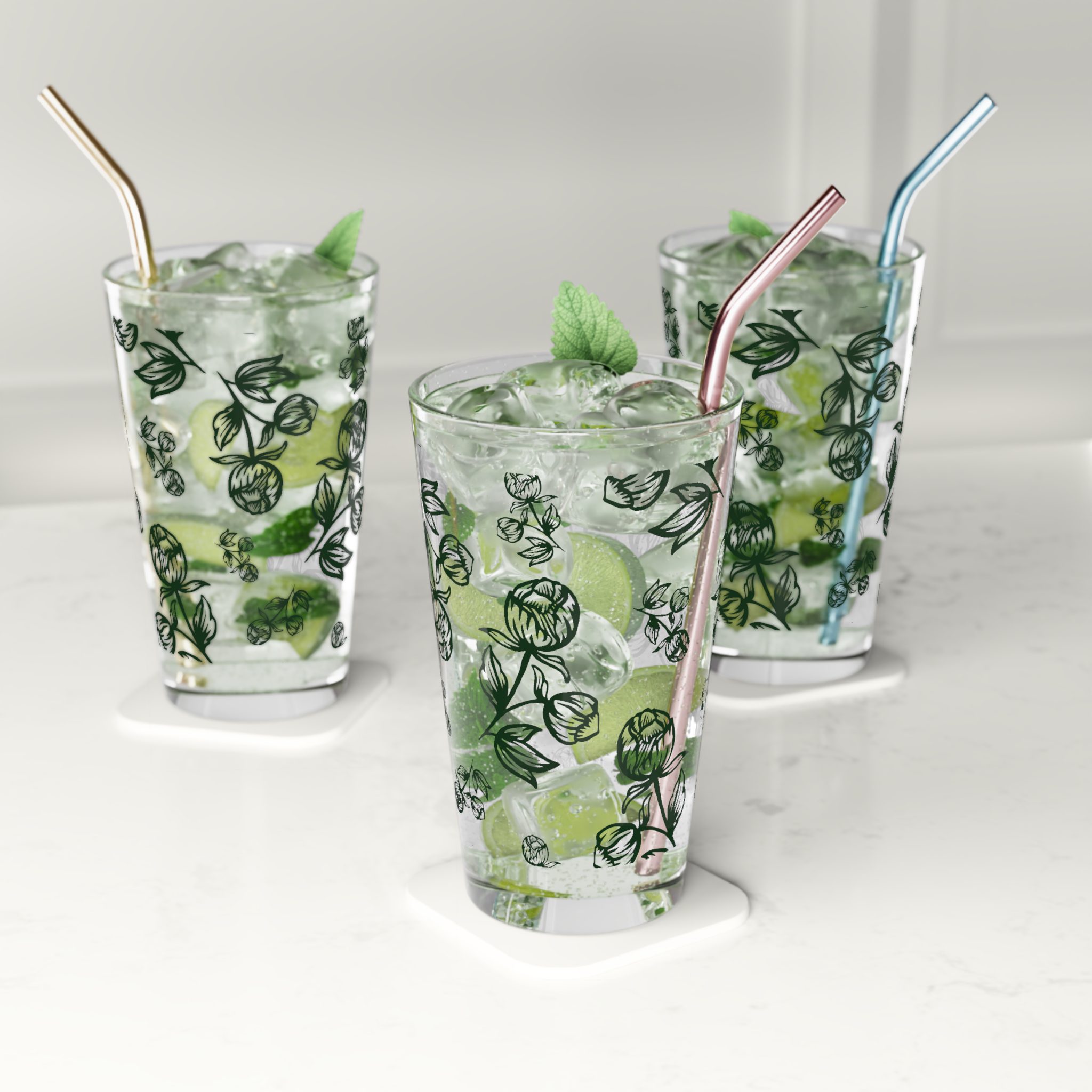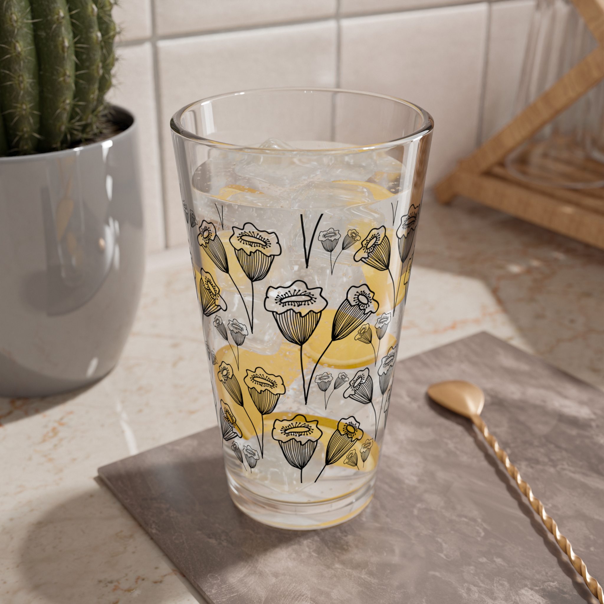 Flowers Lineart Pattren Design – Mixing Glass, 16oz